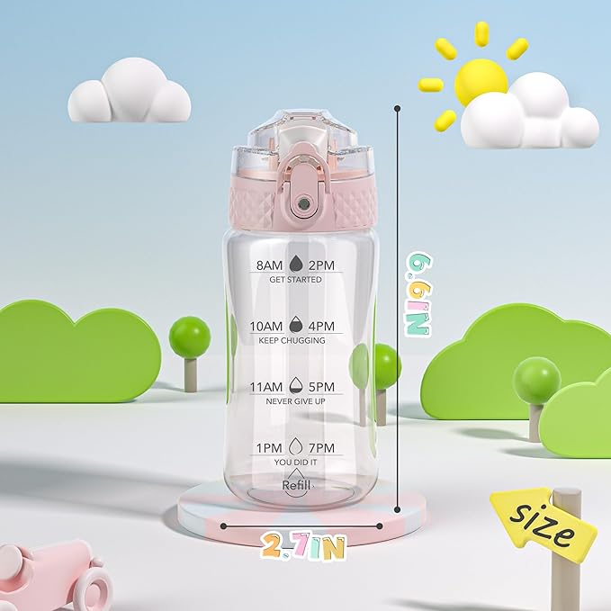 - 【BEST FOR KIDS】: Designed for young children to promote hydration throughout the day. Clamshell design with safety lock to prevent dust and leakage, easy to open with one click.