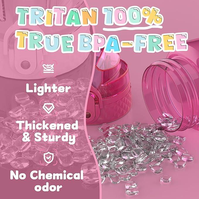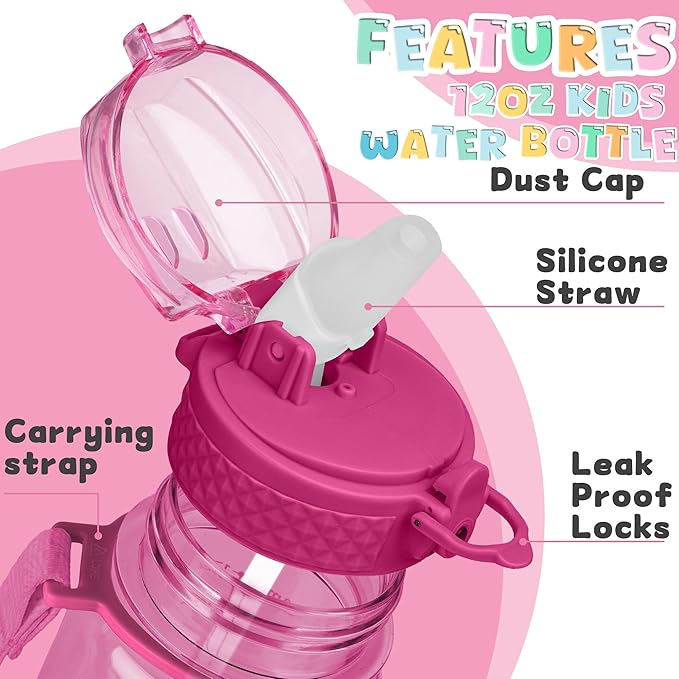 - 【BEST FOR KIDS】: Designed for young children to promote hydration throughout the day. Clamshell design with safety lock to prevent dust and leakage, easy to open with one click.