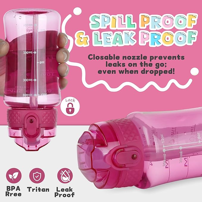 - 【BEST FOR KIDS】: Designed for young children to promote hydration throughout the day. Clamshell design with safety lock to prevent dust and leakage, easy to open with one click.