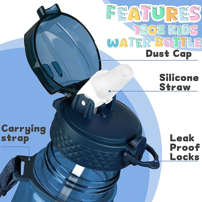 - 【BEST FOR KIDS】: Designed for young children to promote hydration throughout the day. Clamshell design with safety lock to prevent dust and leakage, easy to open with one click.