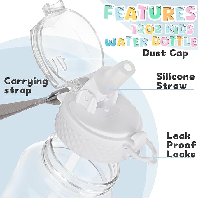 - 【BEST FOR KIDS】: Designed for young children to promote hydration throughout the day. Clamshell design with safety lock to prevent dust and leakage, easy to open with one click.