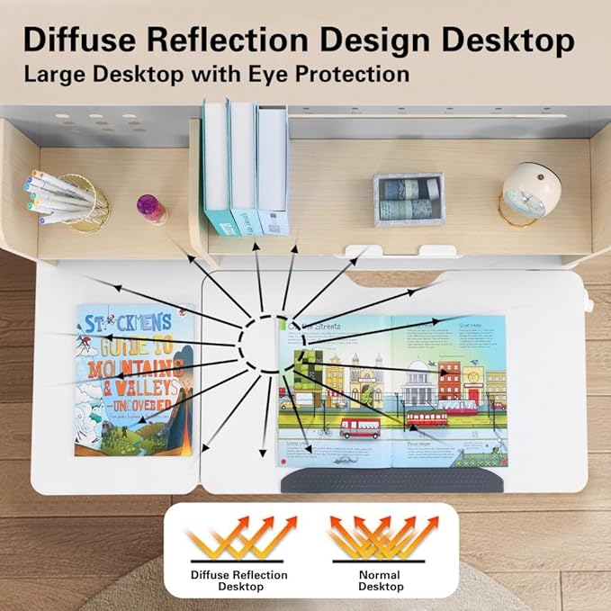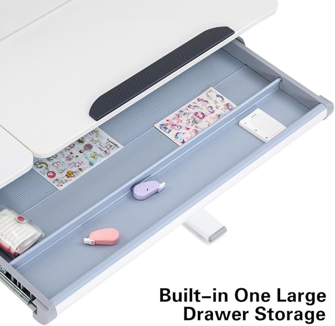 - Tilting Desktop: The desktop can be tilted to various angles from 0° to 50°, making it ideal for drawing, reading, and writing. Whether your child is working on homework, reading their favorite book, or creating a masterpiece, this desk supports all their activities.
