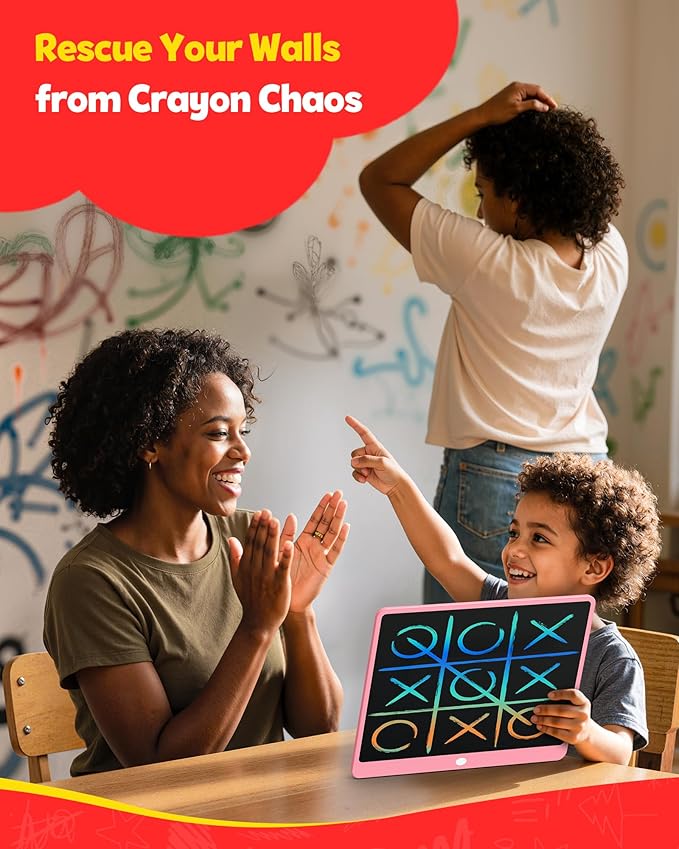 - Upgraded 16-inch Large Screen:The large 16-inch color screen writing space is large enough to be like A4 paper. Let your kids let their imagination run wild, draw, write, spell, count, play games, and have all kinds of creative fun. The pen string can be attached to the doodle board so it won't get lost