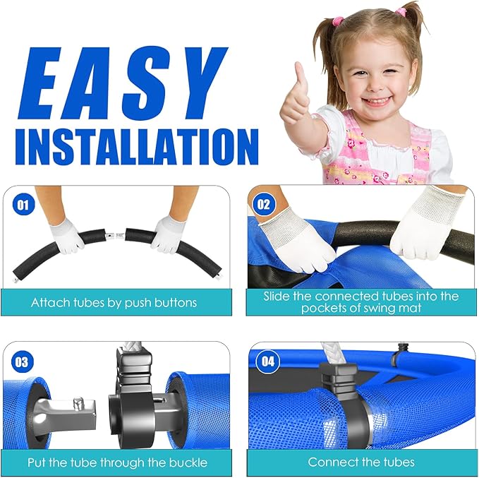 - 【Durable & High-Quality Tree Swing】Made with a galvanized steel frame and Textilene fabric, this outdoor swing for kids supports up to 600 lbs, is waterproof, rust-resistant, and perfect for long-term outdoor use.