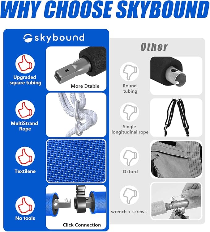 - 【Weatherproof & Tear-Resistant Outdoor Swing】Built with UV-resistant, waterproof Textilene fabric, it’s easy to clean and withstands all weather conditions. The tree swing features upgraded square-pipe frame connectors for added strength and durability.