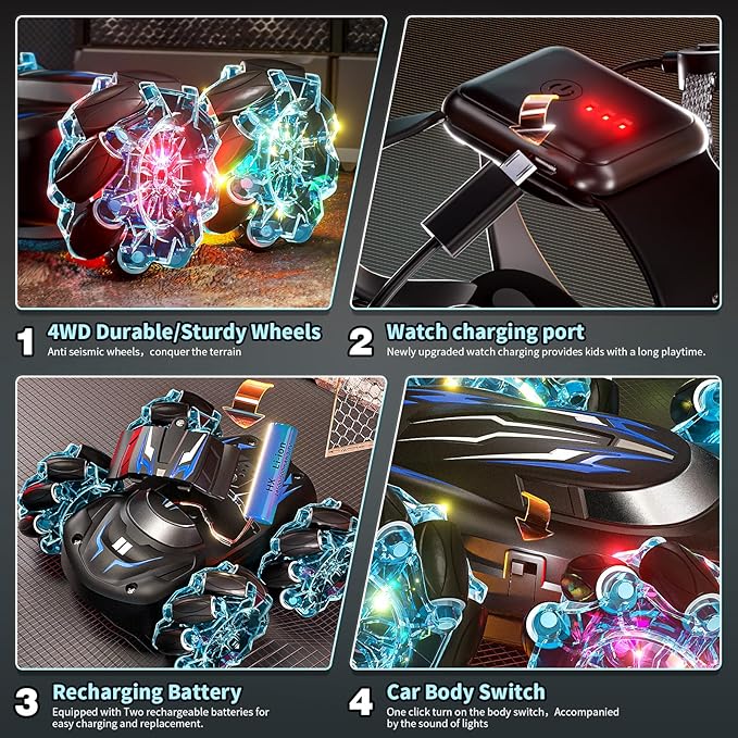 - 【All-Terrain To Play】:Gesture Sensing rc car is equipped with powerful motors and crash-resistant tires, allowing it to conquer all terrains - sand, grass, dirt, rocks, and more. Suitable for indoor and outdoor adventures,greatly satisfies the exploration and adventure spirit of boys and girls.
