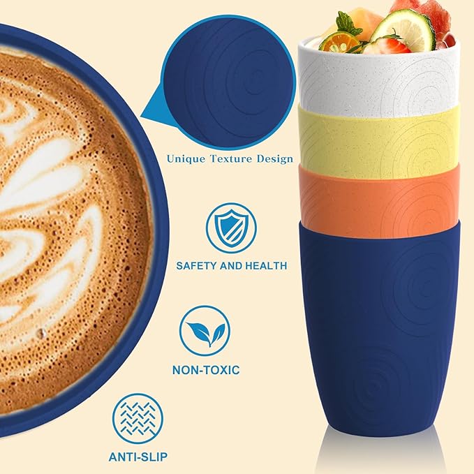 - UNIQUE ANTI-SLIP TEXTURE DESIGN: These wheat straw cups feature smooth edges and a unique textured design on the body that is both anti-slip and decorative for your tabletop. Additionally, the appropriate size makes them easier for children to hold.