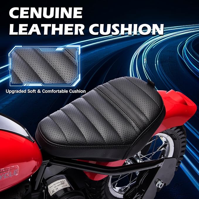 - 【Safety First】: The dirt bike for kids equipped with LED lights for enhanced visibility, this electric dirt bike ensures safe riding even in low-light conditions. The padded leather seat provides comfort, while the inflatable tires offer excellent traction and stability on various terrains