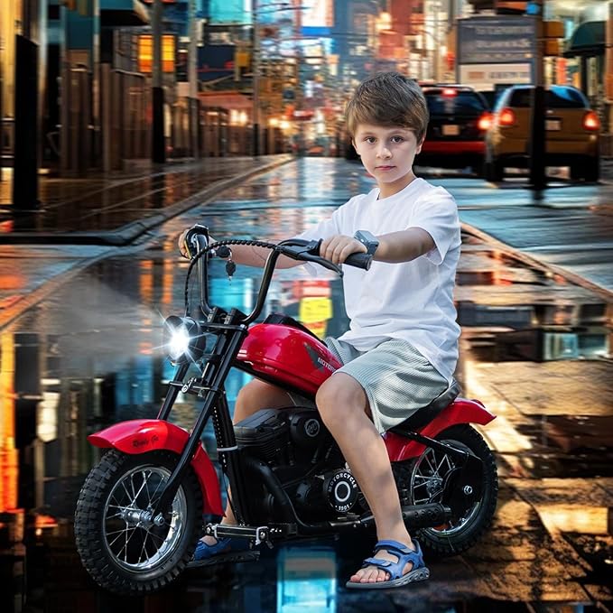 Kids Electric Motorcycle, 24V Electric Dirt Bike for Kids, 250W Motor 14MPH Fast Speed Retro Motocross, Electric Dirt Bike with LED Lights, Leather Seat, Red