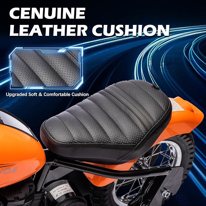 Kids Electric Motorcycle, 24V Electric Dirt Bike for Kids, 250W Motor 14MPH Fast Speed Retro Motocross, Electric Dirt Bike with LED Lights, Leather Seat, Orange