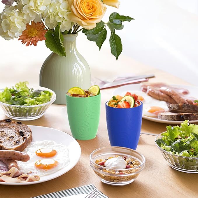 - UNIQUE ANTI-SLIP TEXTURE DESIGN: These drinking cups feature smooth edges and a unique textured design on the body that is both anti-slip and decorative for your tabletop. Additionally, the appropriate size makes them easier for children to hold.