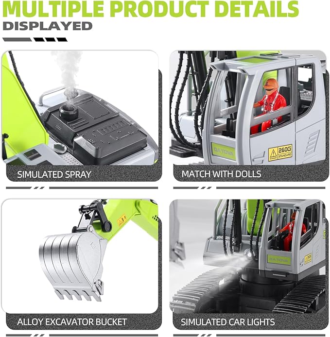 - 【2.4GHZ ANTI-INTERFERENCE & LARGE CAPACITY BATTERY】-The Construction rc excavator is equipped with a powerful 2.4ghz transmitter which enables you to operate at a distance of at least 30 meters or more.You can play multiple 2.4Ghz toys at together without signal confusing, 2*1800mAh large capacity battery, no need to worry battery life. Playing with other construction vehicles will give kids more fun of coordination.
