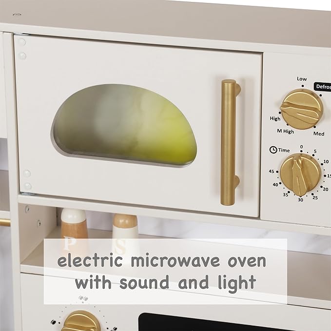 - ⭐High Quality And Sturdy toy kitchens- Made of eco-friendly, non-toxic wood, Very safe for toddlers and kids. Complying with US ASTM F963 and CPSIA standards, it promises safety and endurance during play for preschool infants or toddlers.