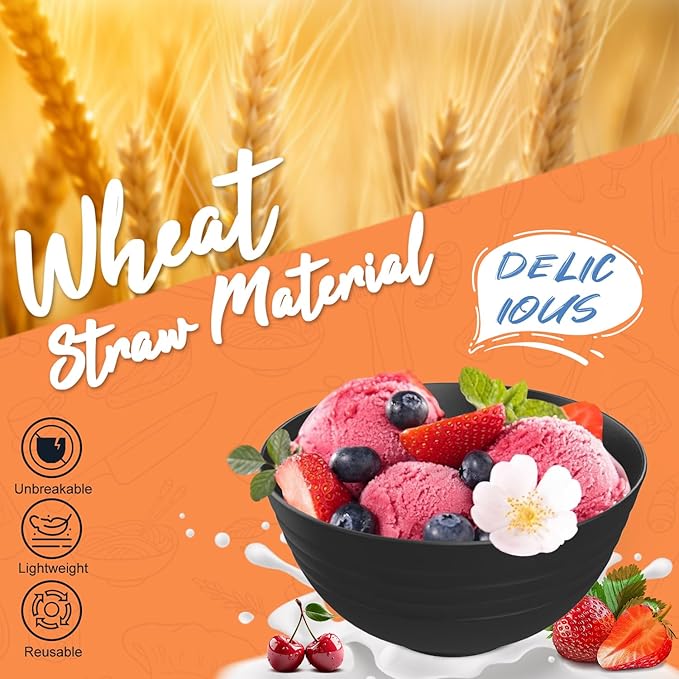 - PREMIUM WHEAT STRAW FIBER & PERFECT COMBINATION :Our wheat straw dinnerware set is made from PREMIUM wheat straw fiber and our perlapoc brand brings you a wheat straw dinnerware set which comes with 8 x 10 inch plate , 8 x 9 inch plate, 8 x 6 inch plate, 8 x 26 oz bowls and 8 x wheat straw drinking cups