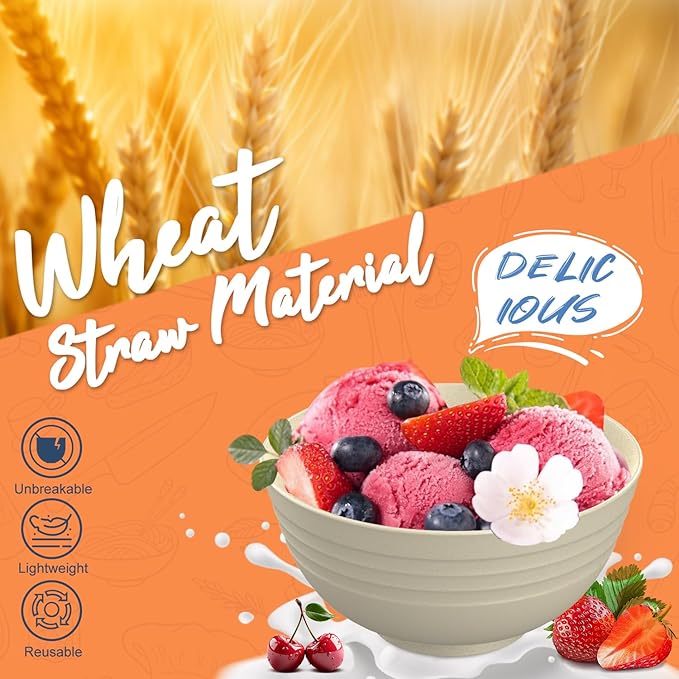 - PREMIUM WHEAT STRAW FIBER & PERFECT COMBINATION :Our wheat straw dinnerware set is made from PREMIUM wheat straw fiber and our perlapoc brand brings you a wheat straw dinnerware set which comes with 8 x 10 inch plate , 8 x 9 inch plate, 8 x 6 inch plate, 8 x 26 oz bowls and 8 x wheat straw drinking cups