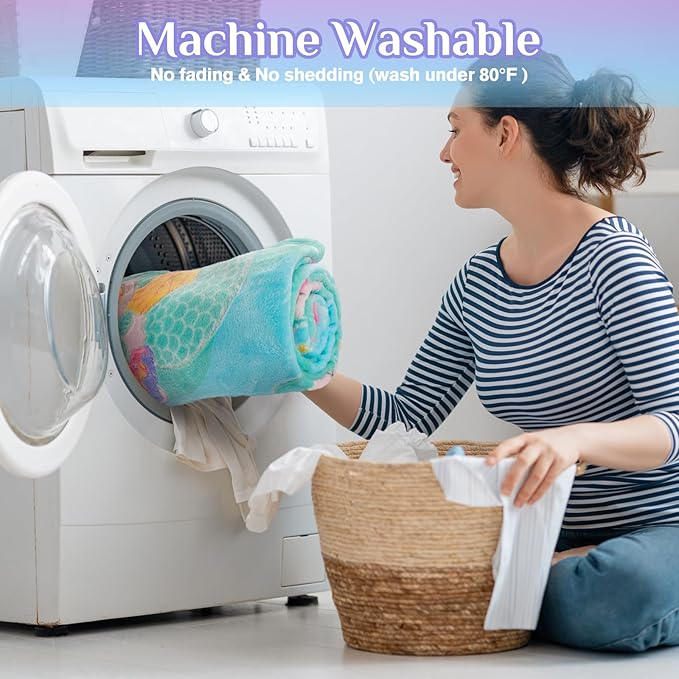 - Washing Instructions - The mermaid glow in the dark blanket can be machine washed in cold water and dried at low temperature, and without compromising luminous performance, and is enough to not lose the soft comfort of the kids toddlers blanket even after months of use. Funny ideas mermaid toys gifts for girls, daughter, sister, nieces,toddler from mom, dad, parents, aunts, uncles, grandparents.