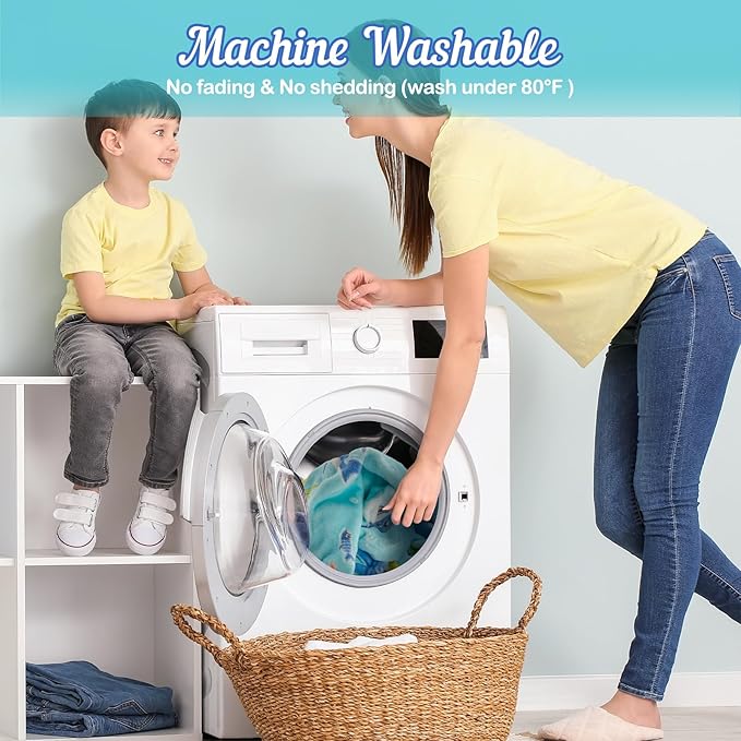 - Washing Instructions - The shark glow in the dark throw blanket can be machine washed in cold water and dried at low temperature, and without compromising luminous performance, and is enough to not lose the soft comfort of the kids boys girls toddlers blanket even after months of use.