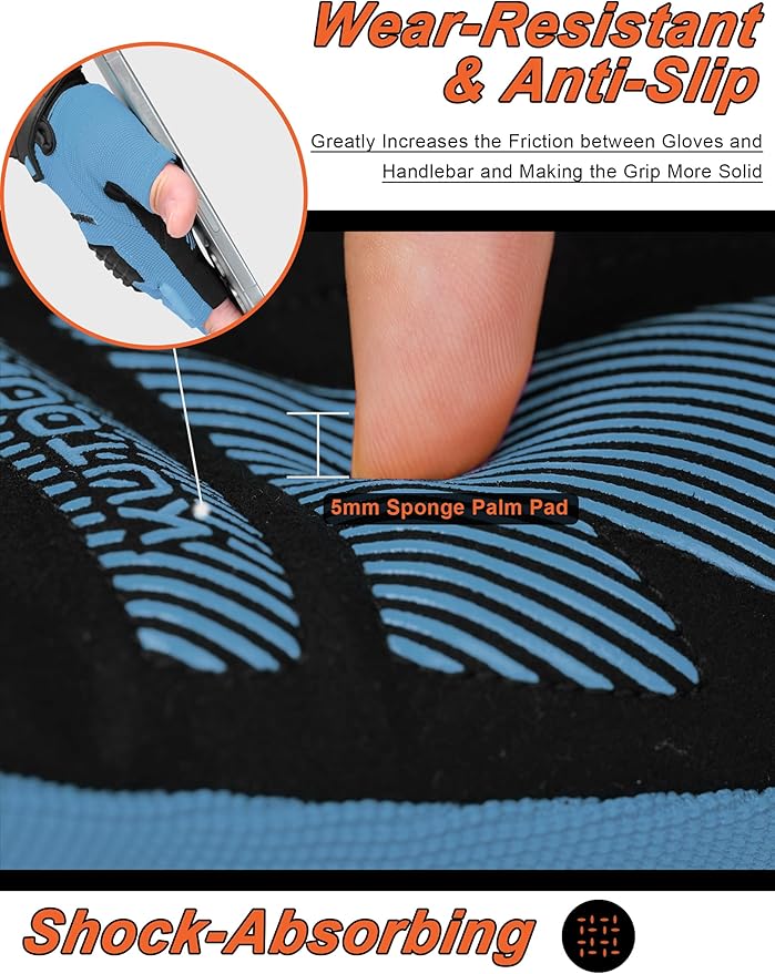 - 🔥 【Shock-resistant&Non-slip】---5MM palm pads will effectively absorb shock, reduce pain and numbness, and non-slip silicone strips on it, make riding easier.