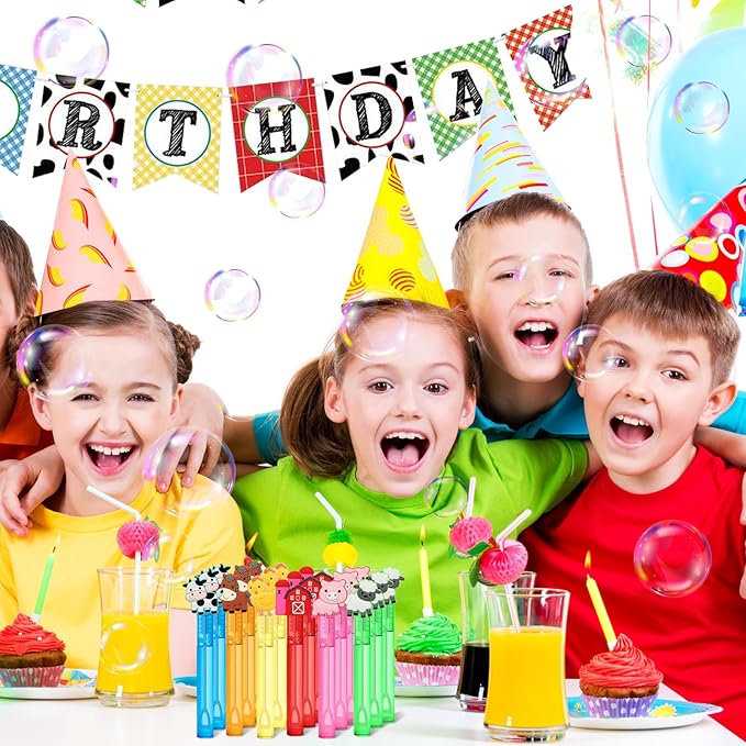 - Farm Animal-Theme Bubble Wands: Our Bubble Wands set includes 24 mini bubbles in 6 vibrant colors- Yellow, Orange, Pink, Red, Green, Blue, to spark joy and wonder at any event, creating magical moments with our Farm Animal Bubble Wands!