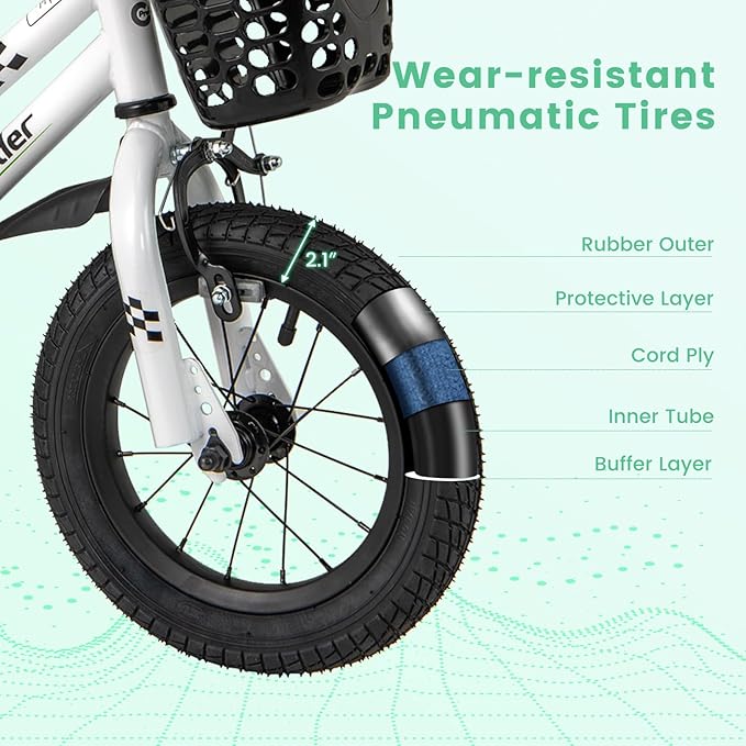 - 【Stable & Reliable Construction】 The kids bike boasts wear-resistant and anti-skid pneumatic tires with 5 layers, providing excellent stability across varied terrains, such as asphalt roads, brick roads, boardwalks, grass, etc. Moreover, supported by a high-strength carbon steel frame, it is designed to endure the adventures of active kids.