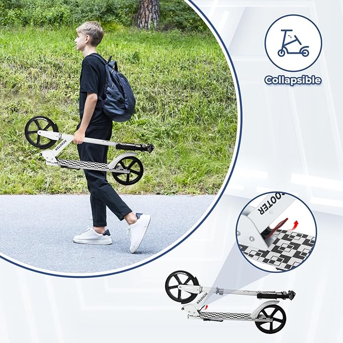 Nattork Scooter for Kids Age 6+, Teens and Adults- Adjustable Height Folding Kick Scooter with Large Sturdy Wheels for a Smooth Ride, Lightweight, Anti-Shock Suspension for Boys and Girls