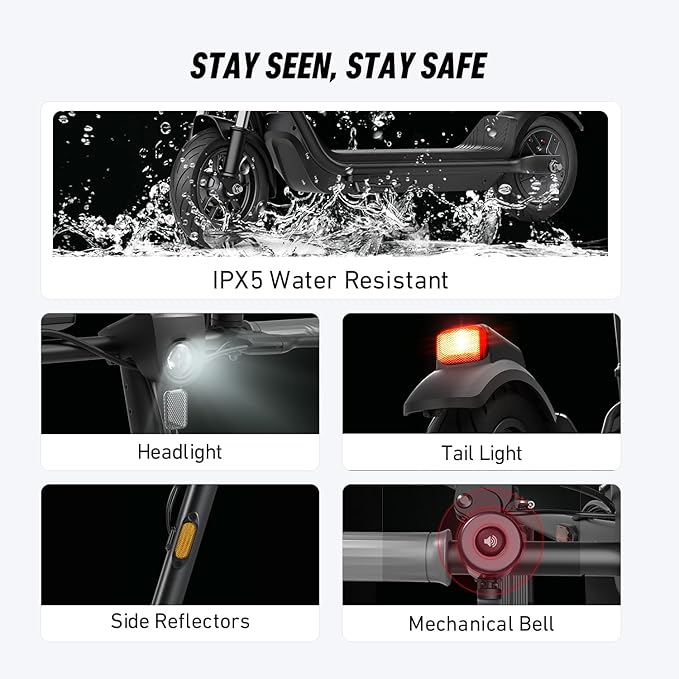 - 【Enhanced Riding Comfort】Comes equipped with 9.5'' pneumatic tube tires that offer a smooth and stable ride, effectively absorbing shocks on uneven terrain. Weighing only 38.1 lbs, this scooter is lightweight yet durable, supporting riders up to 265 lbs.