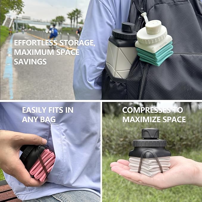 - COLLAPSIBLE, COMPACT, AND PORTABLE DESIGN: Experience the unparalleled convenience of BEAUTAIL's 610ml water bottles, ingeniously designed to collapse down to just a few inches. Perfect for on-the-go enthusiasts, it's an ideal companion for travel, camping, hiking, mountain climbing, biking, and sports.