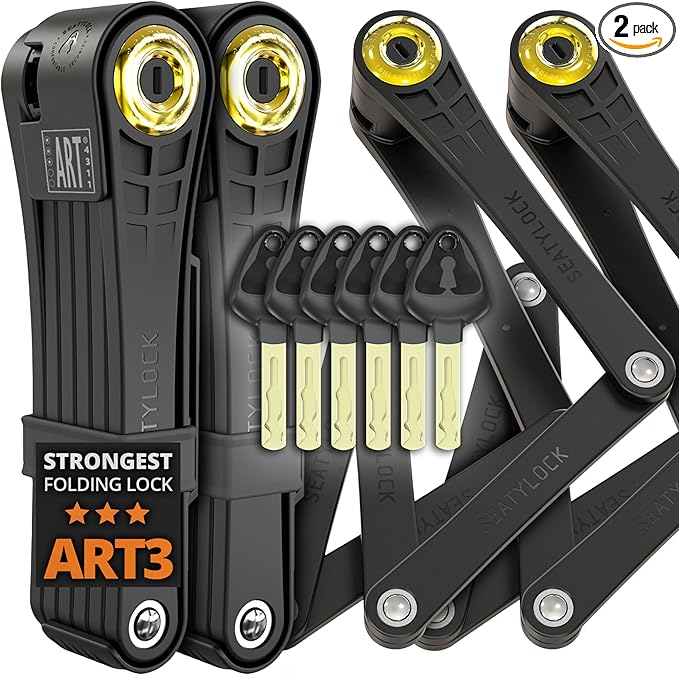 Seatylock Foldylock Elite Folding Bike Lock Set - Patented 2 Matching Bicycle Locks with 6 Identical Keys - 18/18 Heavy Duty Anti Theft Secure Guard with Keys & Case Mount - 43.3"
