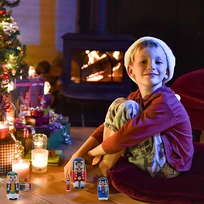 - 【Versatile Decor】Ideal for displaying on shelves, mantels, or as a table centerpiece, these nesting dolls bring a festive touch to any room, making them perfect for Christmas and winter decorations