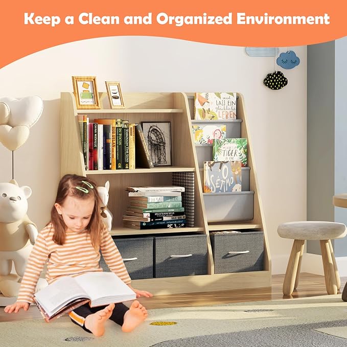 - 10. Kids Book Storage with Effortless Assembly: Setting up our kids book stand shelf is a breeze, thanks to the inclusion of all necessary hardware and a clear manual instruction. You can have this Montessori bookshelf in no time, allowing you to spend more important moment with your child.
