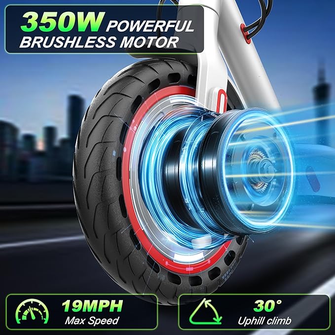 - [POWERFUL BRAKE SYSTEM] 350W stronger brushless motor provides and double braking system featuring with a disc braking and EABS regenerative anti-lock braking. Sturdy aluminium alloy material for riding in security.