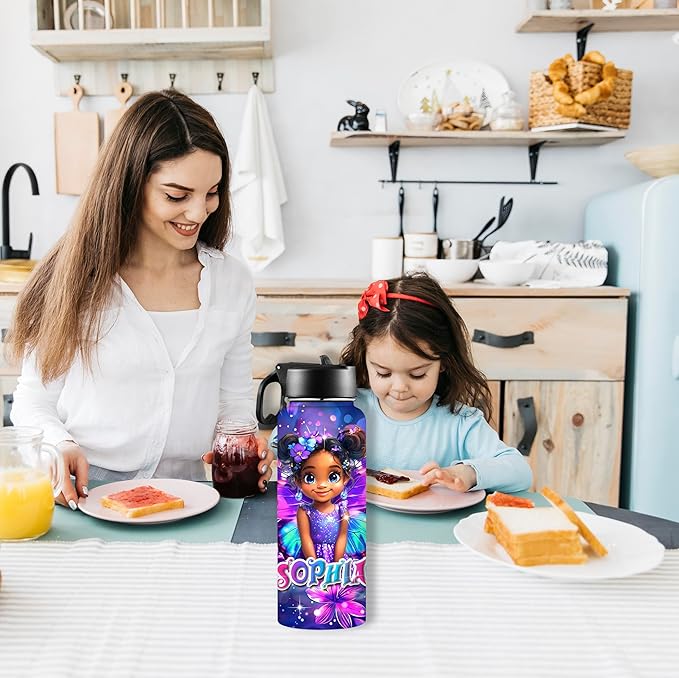 - Custom Water Bottle with Straw: The 18 oz and 32 oz sizes are perfect for kids and adult, The lid with silicone straw makes drinking easy and enjoyable for you, This thermos water bottles can be used for back to school, sports, fitness, hiking, camping, travel or office.