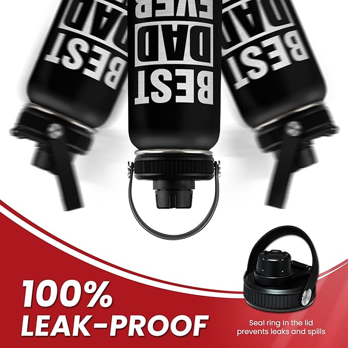 Best Dad Ever Water Bottle 32oz - Stainless Steel Insulated Sports Bottle with Straw Lid, Gifts for Father from Daughter Son