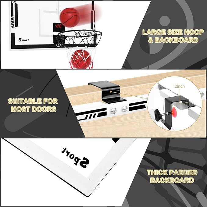 - SHOCK PROOF & NOISE REDUCTION: This door basketball hoop for kids features high-elasticity foam pads at the corners, with 60% more foam than other products, effectively reducing vibrations and noise during shots; It also protects the door frame from damage, allowing you to enjoy the game without disturbing your neighbors
