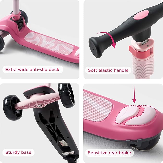 KUB Toddler Scooter for Kids Ages 2+, 3 Wheel Kick Scooter with LED Light-Up Wheels, Adjustable Height Handlebar, Lean-to-Steer, Anti-Slip Deck, Easy-Fold Design, Gift for Boys and Girls