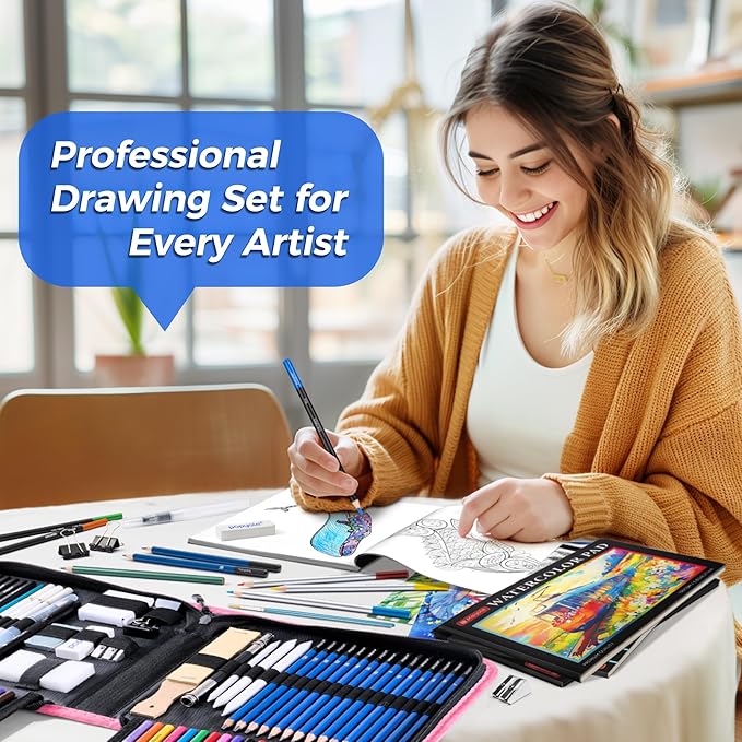 - Portable and Protective Case: The compact art kit case keeps all your sketch pencils, drawing pencils, and other tools organized and safe. With a durable design, it’s perfect for artists who need a portable solution for their art supplies