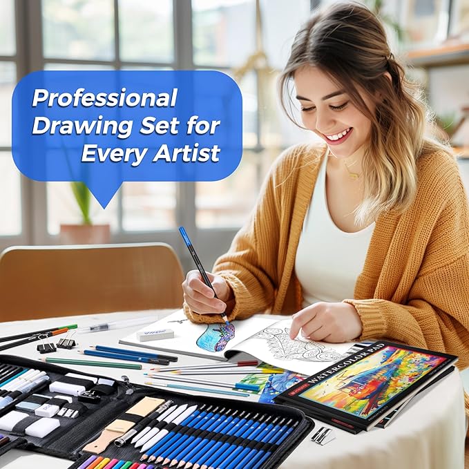 - Portable and Protective Case: The compact art kit case keeps all your sketch pencils, drawing pencils, and other tools organized and safe. With a durable design, it’s perfect for artists who need a portable solution for their art supplies