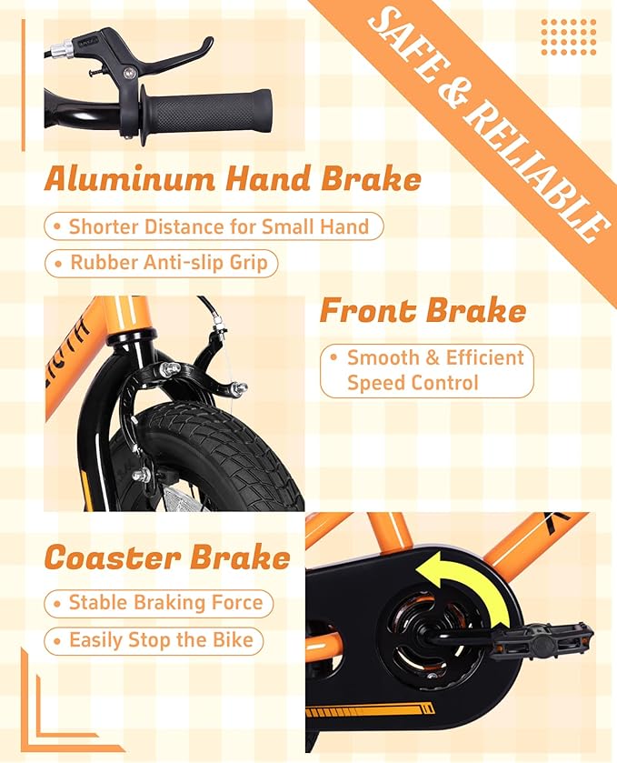 - Safety and Sturdiness: The trusty coaster brake is perfect for toddlers who might not have the muscle power for hand brakes yet. The full chain guard keeps little fingers safe from getting caught in the chain. And those big 14 x 2.4-inch tires give a great grip to stop any slipping while they're riding