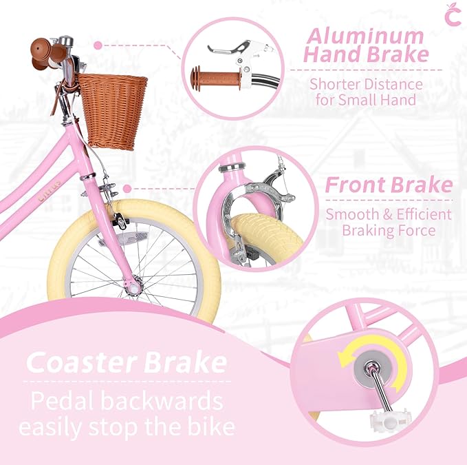 - Charming Accessories: The bike comes with installation tools and delightful extras, such as an aluminum bell and a durable basket, merging functionality with fun. Customizable DIY stickers are included, inviting children to express their creativity and personalize their bikes