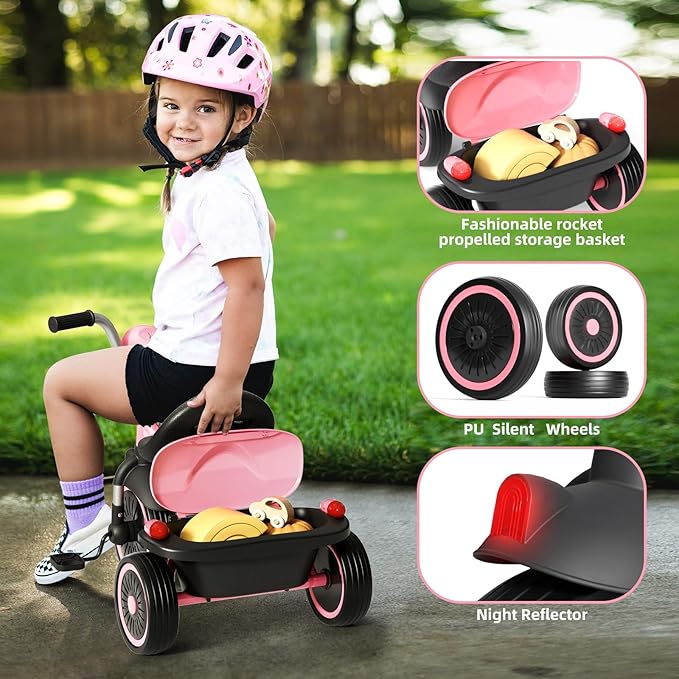 - 【High-Quality Construction for Safety and Durability】Crafted from high-strength high-carbon steel, this sturdy toddler tricycle offers exceptional stability and robust carrying capacity. The non-pneumatic, shock-absorbing tires provide excellent traction and wear resistance, making it ideal for various terrains including sidewalks, park paths, and playgrounds.
