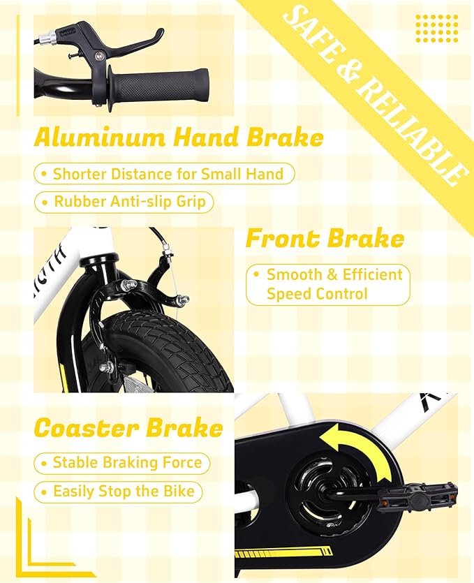 - Safety and Sturdiness: The trusty coaster brake is perfect for toddlers who might not have the muscle power for hand brakes yet. The full chain guard keeps little fingers safe from getting caught in the chain. And those big 14 x 2.4-inch tires give a great grip to stop any slipping while they're riding