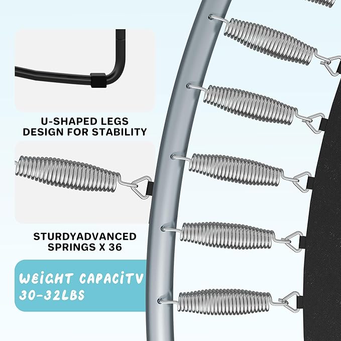 - Spring System: Equipped with a reliable spring system, this trampoline delivers excellent bounce and ensures a smooth and exhilarating jumping experience.