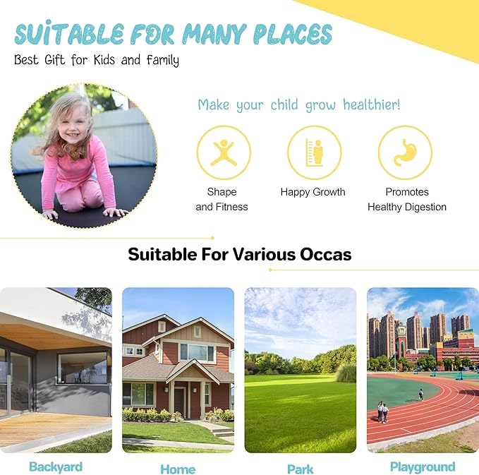 - Safety Enclosure Net: The trampoline comes with a safety enclosure net that surrounds the jumping area, providing a secure and protected space for kids to play.