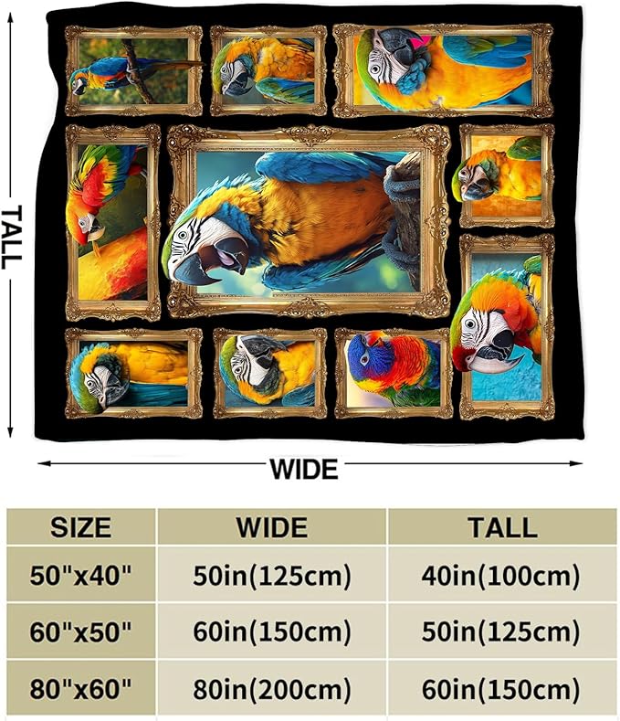 Parrot Blanket Fleece Soft Warm Plush Macaw Throw Blanket Lightweight Plush Fuzzy Cozy Parrot Bird Blankets for Lover Kids Adult Suitable for Couch Sofa Bed 60"X50"