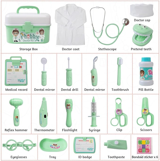 - Portable Storage Case: The included storage box keeps all the doctor tools neatly organized and easy to carry, allowing your little doctor to take their medical kit on the go. The secure latch ensures everything stays in place for convenient storage and travel.