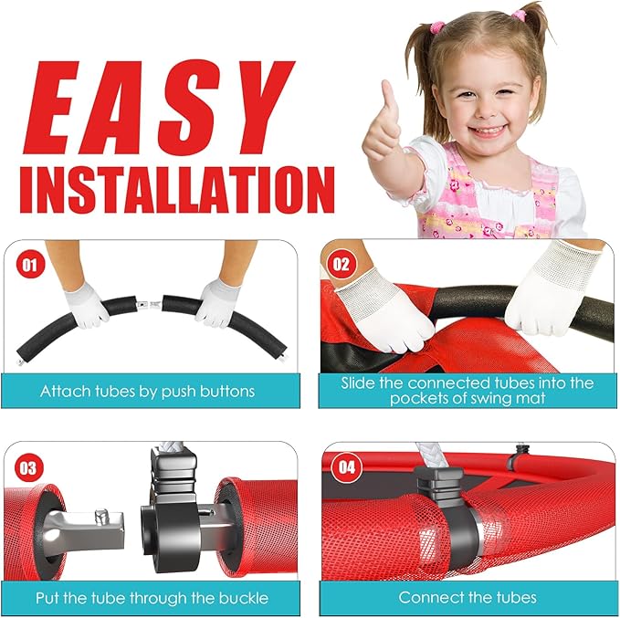 - 【Durable & High-Quality Tree Swing】Made with a galvanized steel frame and Textilene fabric, this outdoor swing for kids supports up to 600 lbs, is waterproof, rust-resistant, and perfect for long-term outdoor use.