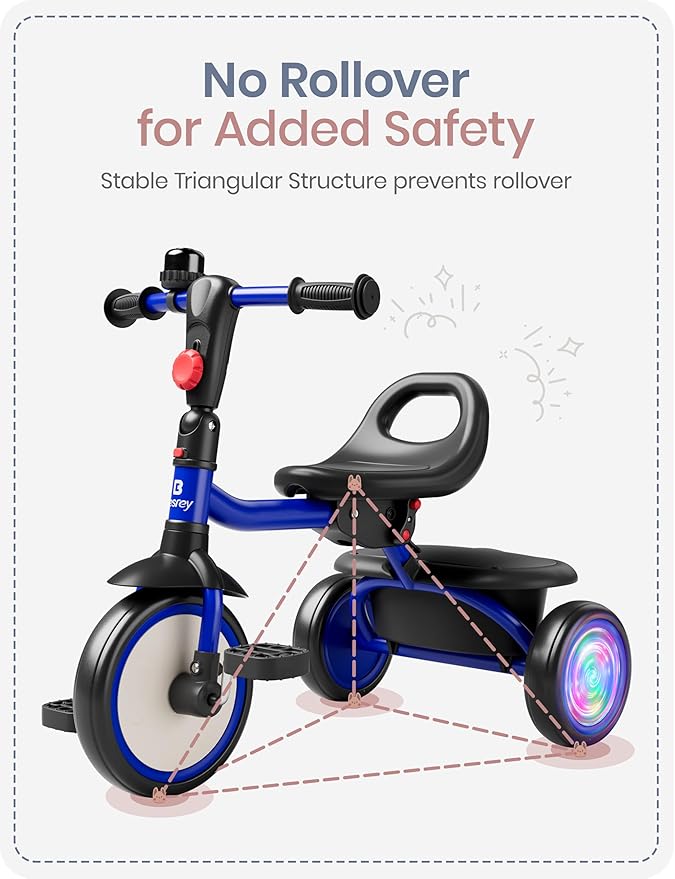 besrey Kids Tricycle with Flash Wheels for Ages 18 Months to 5 Years, Toddler Tricycle with Bell, Kids Tricycle, Gift for 2-5 Year Olds, Gift and Toy for Boys and Girls, Tricycle for Toddlers, Blue