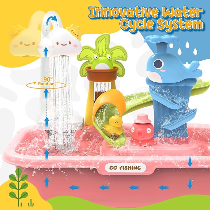 - Upgrade playtime with our 4-in-1 multi-functional sink toy! Now with detachable legs, it's perfect for both standing and tabletop fun. This versatile set combines kitchen play, water park excitement, fishing fun, and a working sink all in one. With an expanded 3L water capacity and raised height, it’s designed for a comfortable, immersive experience for kids of all ages.