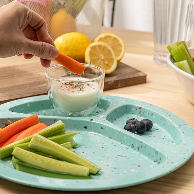 - Portion Control Plates: Designed with three spacious compartments, these plates are perfect for maintaining balanced, healthy meals. Ideal for all age groups—kids, adults, and the elderly—they’re especially helpful for anyone looking to manage their weight or stay in shape. Plus, our tableware is reusable, making it a great eco-friendly replacement for disposable plastic or paper tableware.