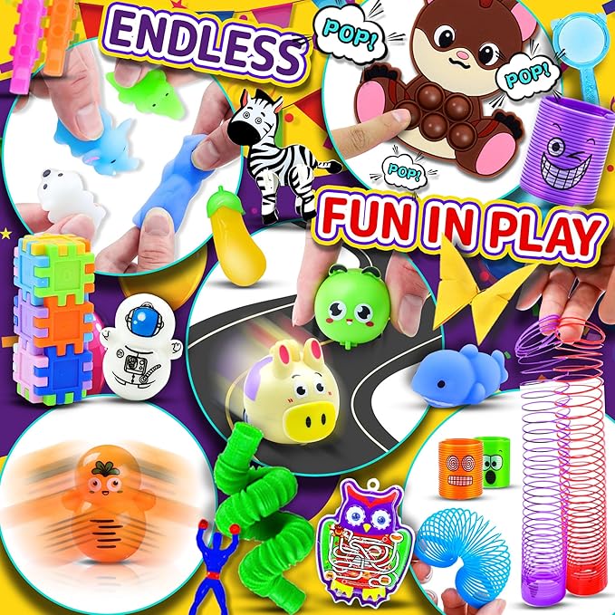 - High-Quality&Safe:Crafted from high-quality, non-toxic materials, our party favor toy assortment prioritizes your child's safety. Each toy meets strict safety standards for parents' peace of mind. Durable and built to last, these toys are perfect for energetic play, whether indoors or outdoors. Parents can trust that their children are enjoying safe and fun toys every day.